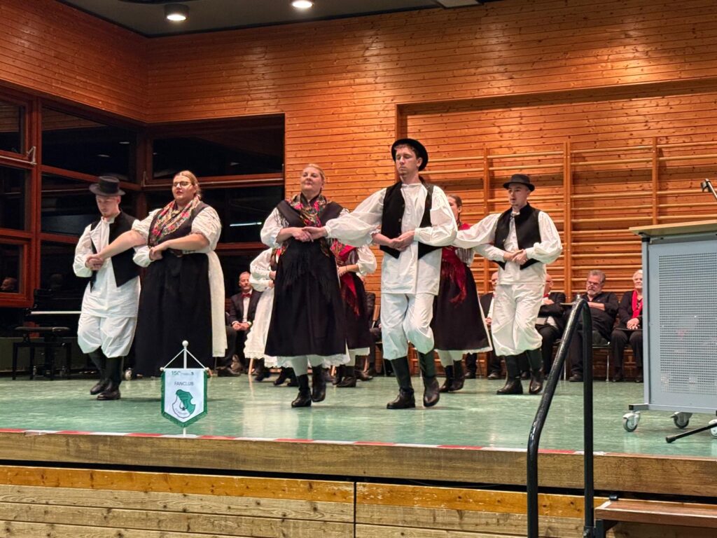Eine bunte Mischung wurde dargeboten, gebunden in einem Strauß immergrüner Melodien, gesungen von den hervorragenden Chören des Gesangvereins, unterstützt von dem fabelhaften Männer Chor aus Balzholz und dem sensationellen Solo-Trompeter Rüdiger Ruf, sowie der begeisternden Kroatischen Volkstanzgruppe Hkud SRCE Hrvatsko. Der hochgelobte, engagierte Dirigent „Maestro“ Reiner Hiby verstand es wunderbar, diesen Abend zu gestalten und das Publikum mitzunehmen auf diese Reise.